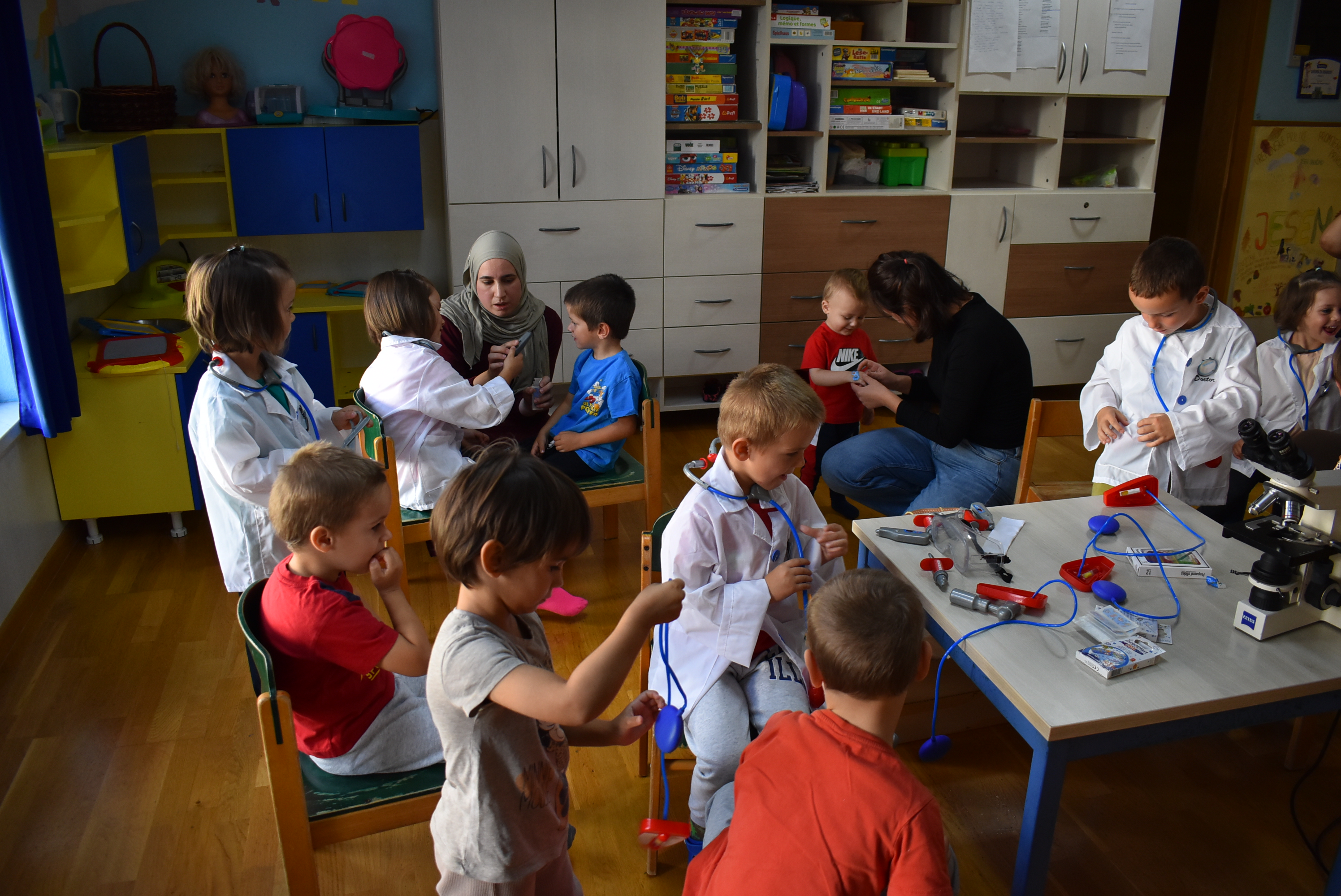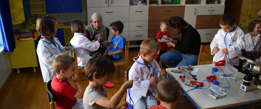 Mališani su s oduševljenjem učestvovali u radionici, uživajući u ulozi doktora i druženju s medicinskim osobljem.